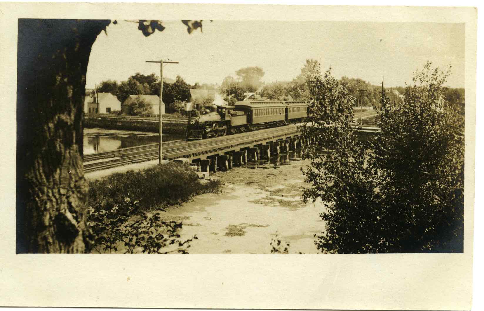 Published March 25, 2023 at 1647 × 1058 in A Very Green Street: Irish Families in Hingham in 1900 18 TRAIN crossing downtown pond pc69-2-large ← Previous Next →