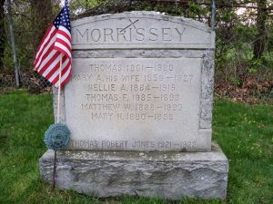 the Morrsisseys, 1900 was just seven years since the tragic loss of three of their young children to scarlet fever. The children’s young lives are memorialized on the family headstone at St. Paul’s Cemetery. Both Thomas and Mary were born in Irish immigrant households in Hingham. Thomas grew up on Elm Street. Mary’s parents earlier had a home on Green Street but after her dad’s death, her mother Ellen Crehan lived with her youngest daughter Catherine’s family here.