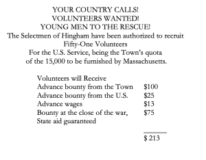 The war was in its second year. The month before President Lincoln had put out an urgent call for additional troops, and the town had rallied to meet its quota. On July 25, 1862, the Hingham Journal printed a powerful appeal that included increased bounties: