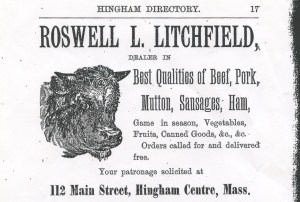 Ad for the Litchfield Meat Market, Hingham Directory (1885)