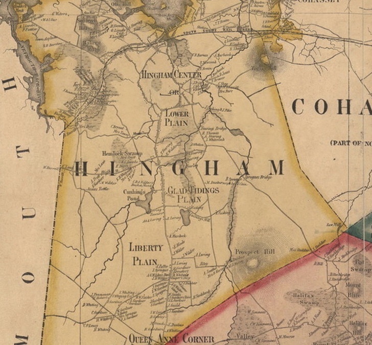 In 1727, due to the distance from the downtown meetinghouse, Hingham’s First Parish or what we know as Old Ship, the inhabitants of Glad Tidings Plain began to agitate for religious services in South Hingham during the winter. Each of their proposals was refused. By 1738, they requested to be set off into their own parish and precinct. This caused much controversy, as downtown residents who also owned farmland in South Hingham would be taxed to support two churches if this occurred. Undaunted and rebellious, the residents of South Hingham, led by Theophilus Cushing (1703-1779), decided to build their own meetinghouse.