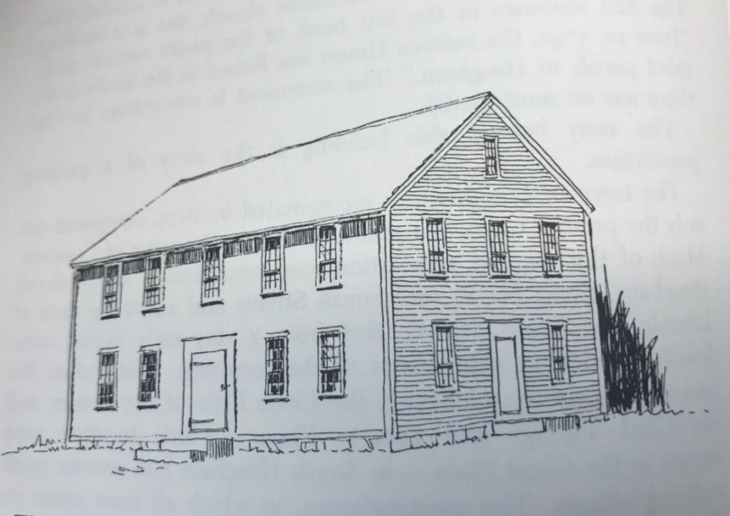 Cushing gave the land, and Solomon Loring and others provided the building materials. The frame was raised June 22, 1742. The original church was a simple rectangular structure with pews owned by parishioners on the first floor and galleries upstairs. Now the inhabitants had a meetinghouse, but no preacher and no public money to pay one. They continued to petition the Great and General Court in 1744 and 1745. Finally, on March 21, 1746, the parish was established. Reverend Daniel Shute (1722-1802) was called as minister and served for over 50 years.